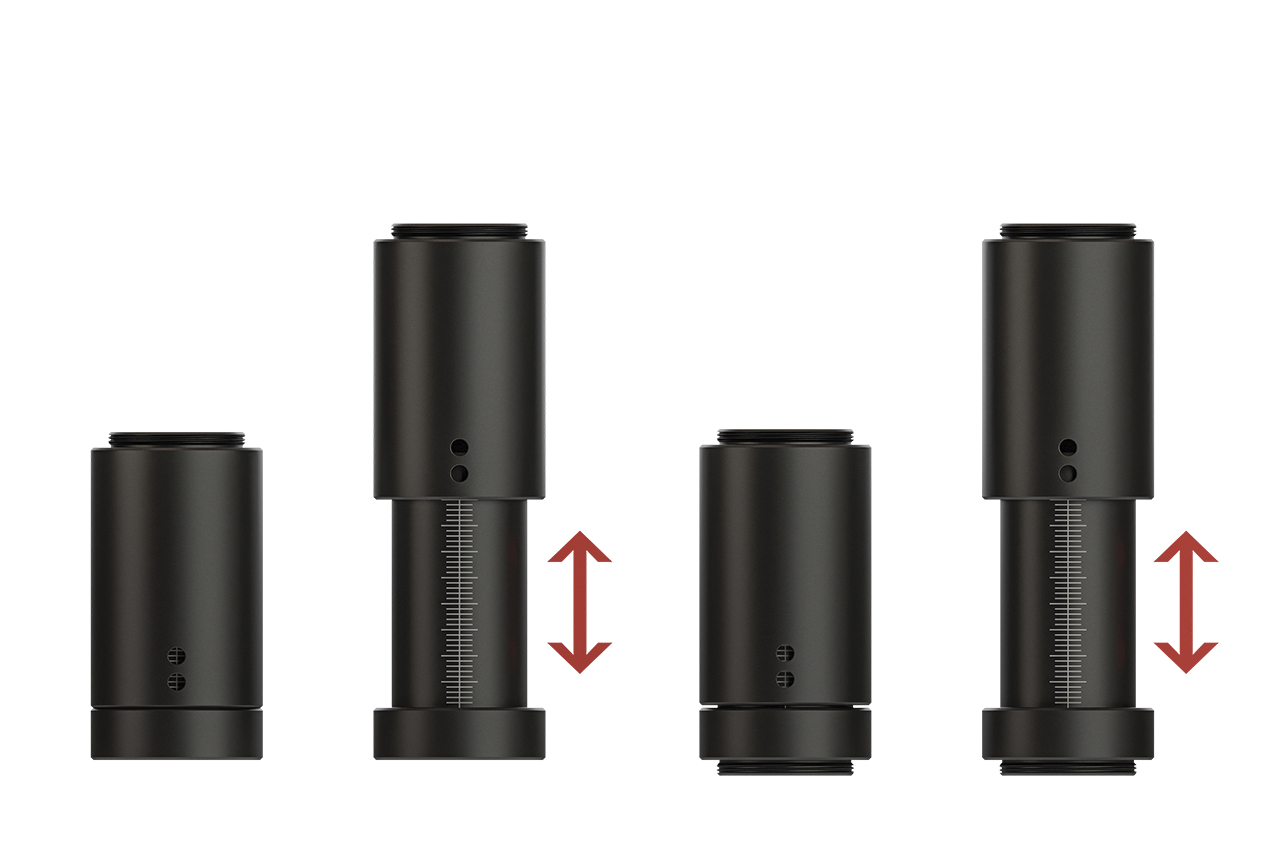 Телескопические тубусы с резьбой SM1 на концах трубок. Выпускаются в 2-х версиях - ATl-x (fm) или ATl-x (ff). Тубусы используются для экранирования света в оптических схемах и/или установки оптических компонентов диаметром 25,4 мм. Конструкция позволяет встраивать тубусы в уже собранную оптическую схему. Могут соединяться между собой, что позволяет удобно масштабировать схему. Могут быть выполнены по индивидуальным размерам (под запрос).